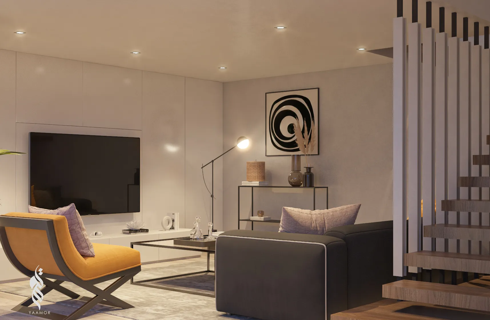 تصميم داخلي فاخر وعملي يليق بالفيال الخاصة بك أو مكتبك – حلول عملية تناسب ميزانيتك – راحة، جمال واستغالل للمساحات مع يعمر لالستشارات الهندسية